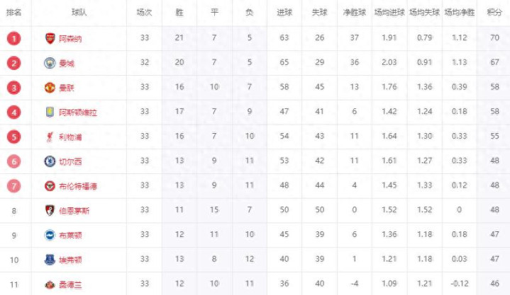 在英超第33轮的“天王山之战”中,曼城主场2-1力克阿森纳,在少赛1场的情况下,曼城积67分排在第2,只少榜首的阿森纳3分,争冠悬念又回来了。此前,阿森纳高居榜首,并在欧冠中晋级4强,风光一时无限。然而,阿森纳在前2个赛季连夺2个英超亚军后,似乎还是没有吸取教训,上一轮就在主场1-2输给朴茨茅斯,这一轮又在客场1-2输给曼城。接下来的赛程中,曼城赛程更好,一队成争冠判官,极端情况2队同分。
